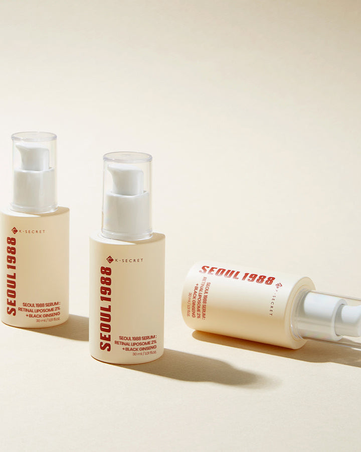 O KSECRET Seoul 1988 Serum é um sérum anti-idade de alta performance, formulado com 2% de Retinal Liposome e ginseng preto fermentado, criado para suavizar rugas, melhorar a firmeza e revitalizar a pele cansada.